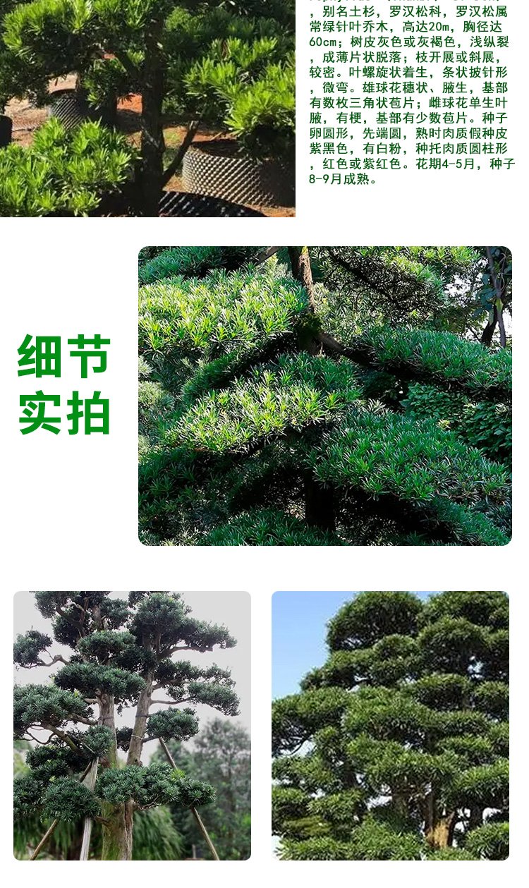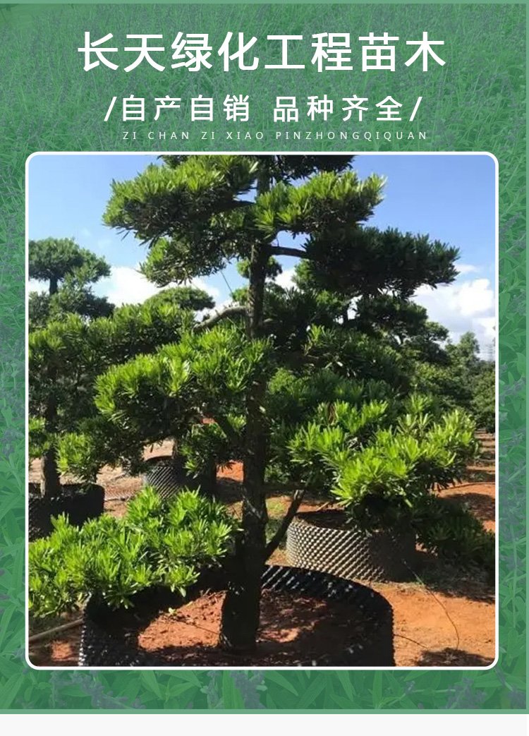 景区园林观赏植物 常绿工程绿化乔木 造型丰富 罗汉松基地销售